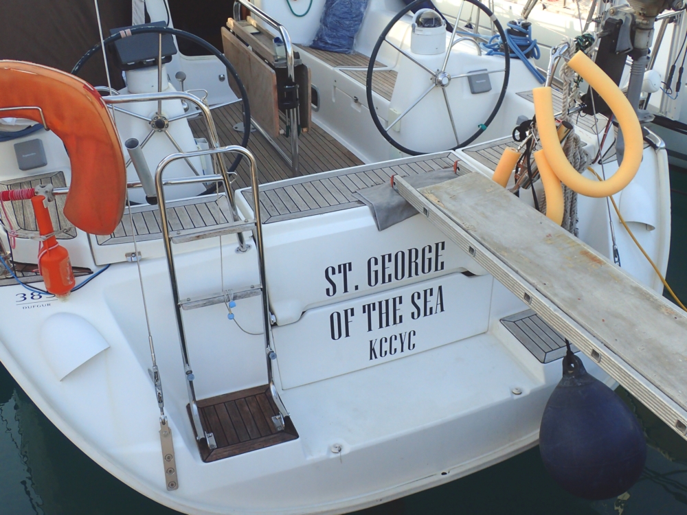 Яхта наша частная, 2008 года, Дюфур 385 со странным именем St.George of the sea. Хозяин некоторое время не приезжал к свей яхте и вот дал ее Леше покататься.