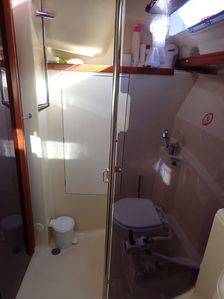 Из своего парусного вооружения у яхты был грот, убирающийся в лэзи бэг и огромный стаксель-генуя. Как выяснилось позже, старые частные яхты сыпятся не хуже, а даже круче чартерных. Эта яхта простояла всю зиму без ухода, поэтому у нее обросло водорослями дно, а при помывке сверху вода протекла в кормовую каюту и подмочила матрас. И вообще, нужно было расконсервировать лодку после долгой стоянки. Раньше мы этого не делали, ведь чартерная компания сама готовит лодку. Так что получили много нового опыта. Вот, например, баки с водой на долгую стоянку заливают слабым раствором лимонной кислоты, чтобы вода не зацвела. Надо их все тщательно промыть.