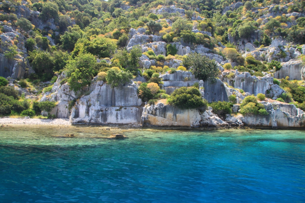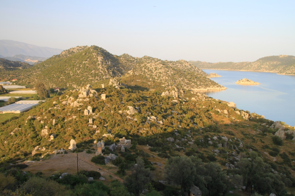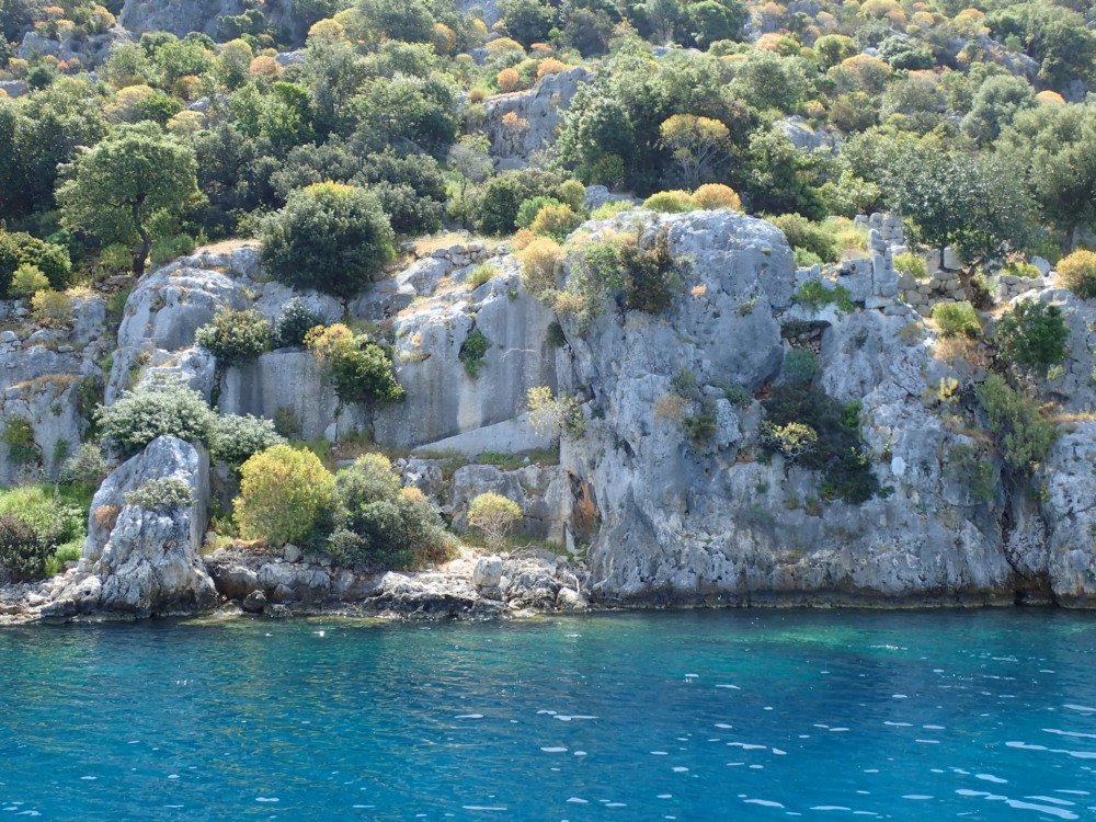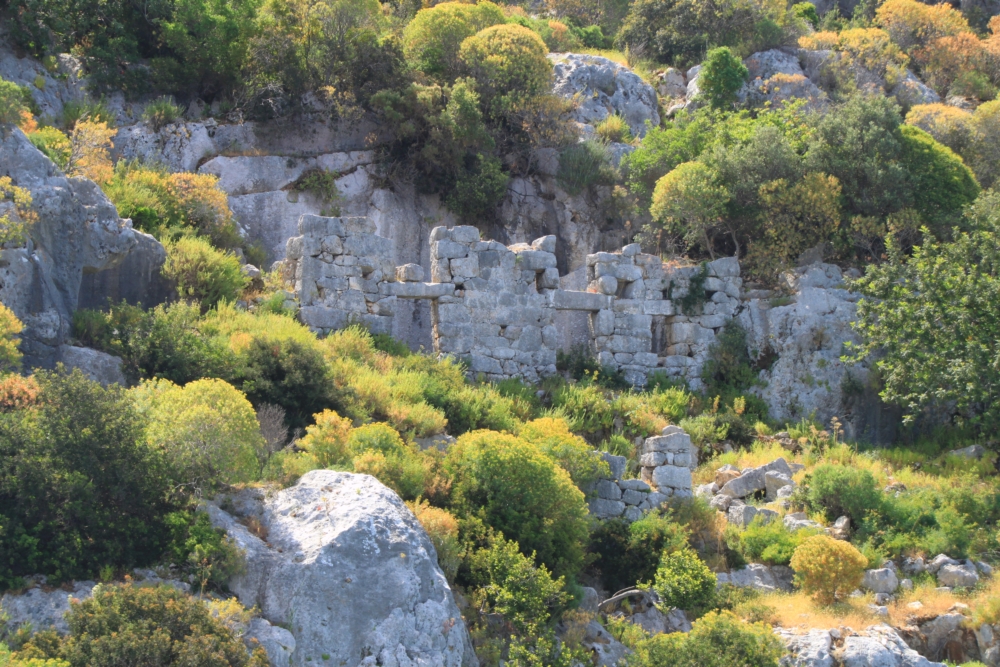 По хребту карабкаются ликийские гробницы. Первую неделю мы провели в Карийском царстве, а сейчас идем вдоль берегов Ликийского царства.
