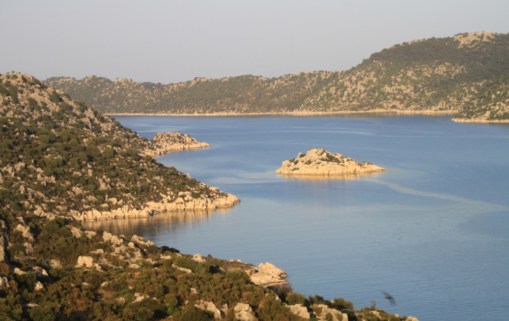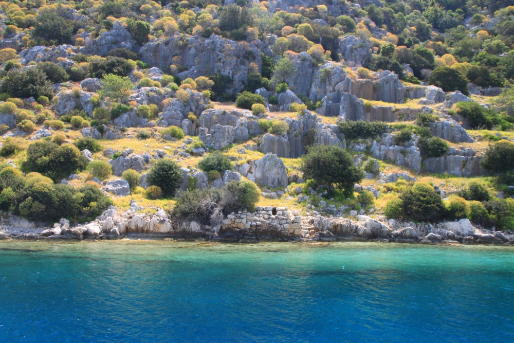 Видно не очень много, в этом смысле остров Гемилер гораздо интереснее, потому что гуще был населен и там больше руин. Но тут очень красивое море.