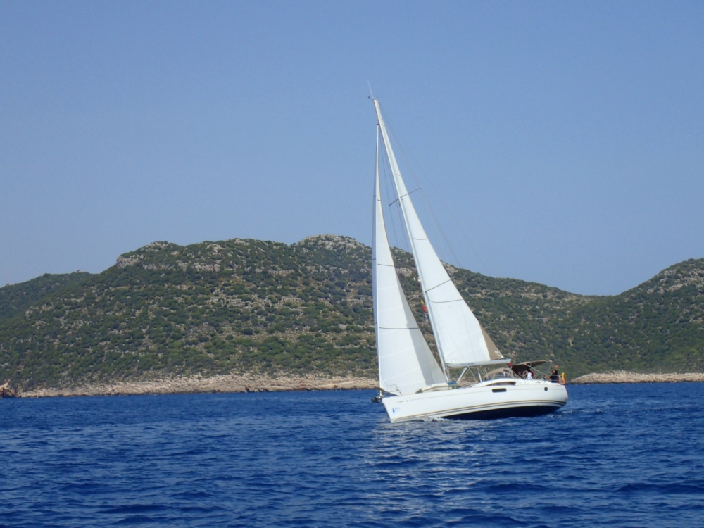 В Каше мы зашли в марину починить генакер, его мгновенно заклеили за 50 лир. Еще надо было соблюсти бессмысленный зеленый ритуал: откачать говнотанк на заправке специальной помпой и поставить об этом куда-то в документы специальную отметку. Как будет весь остальной год этот танк в море не сливают! Как дети, право слово. Поставить отметку оказалось сложнее, чем парус зашить. Закончив все эти хлопоты, мы отшвартовались и встали на якорь.