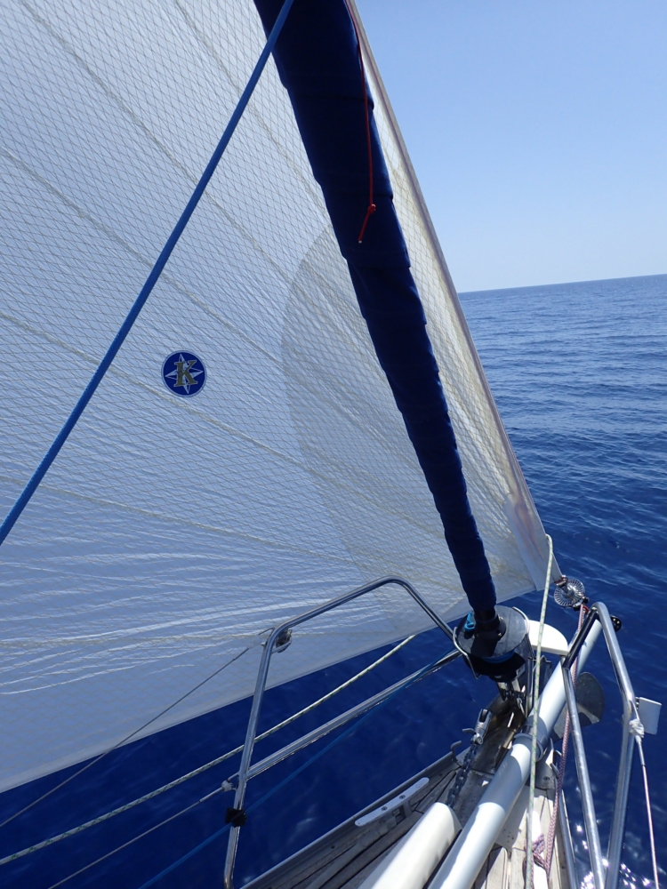 Мы подождали ветра до 10:30 и это себя оправдало: выйдя из Скопеа Лимани, подняли паруса.