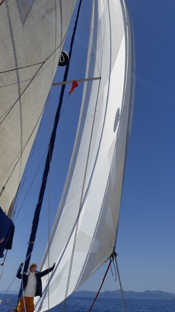 Пройдя остров Йилдыз, мы поймали 6-8 узлов бактшага и распустили одинокую геную. Полчаса прошлись под парусом напоследок.