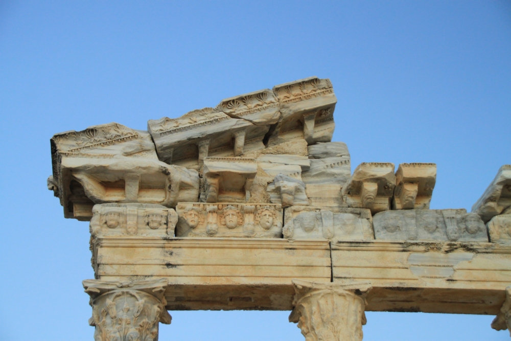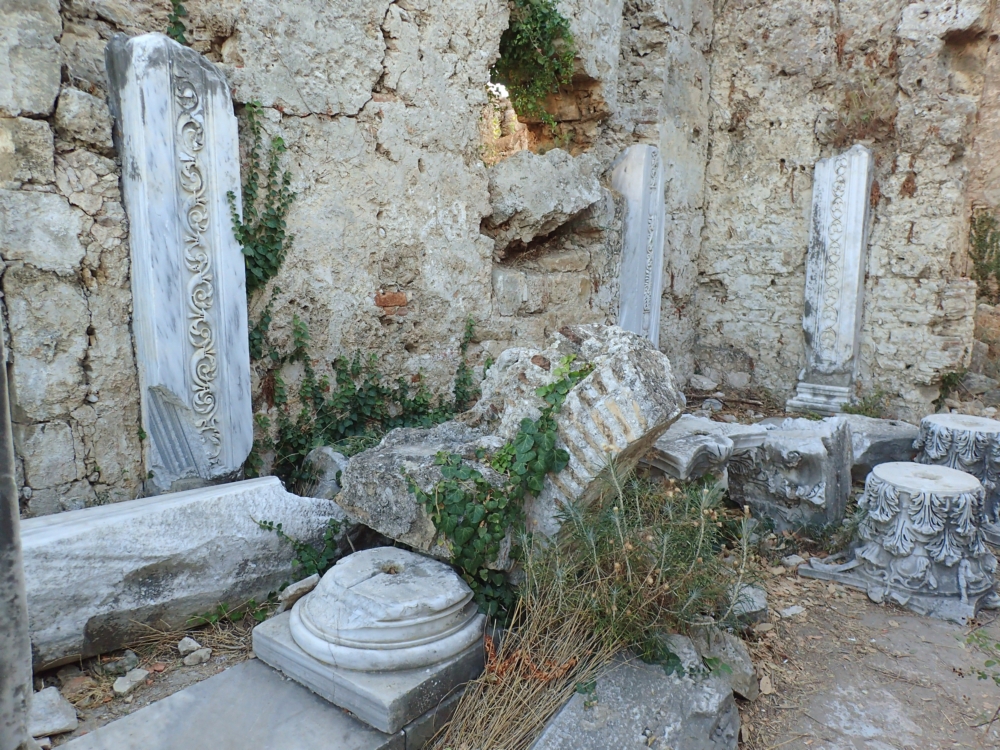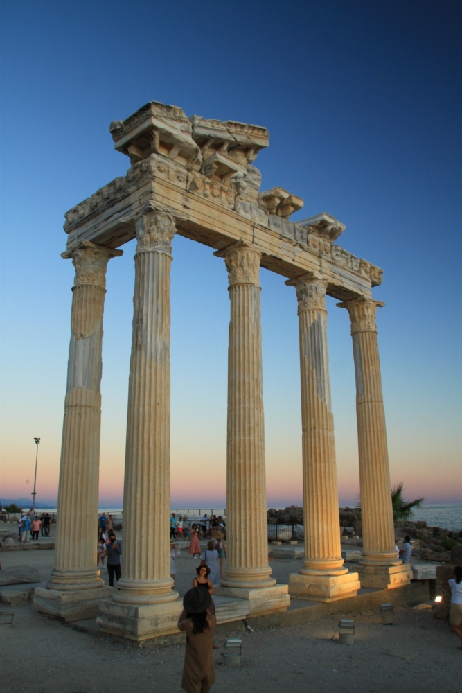 Когда-то тут был храм Аполлона и Афины. Турецкие реконструкторы наверняка поставили эти колонны заново, включив туда фрагменты старых колонн, а основной массив вырезали из нового камня.