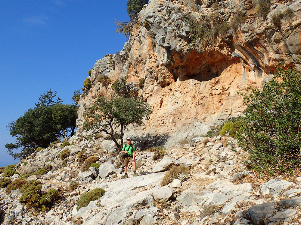 Маршрут круговой, мы его уже ходили два года назад. Всего 15 км, 7,5 ходовых часов плюс обед, купание в бухтах, всего у нас получилось почти 9 часов, при маленьком световом дне нужно успеть до темноты. А так медленно идется потому, что набор и сброс высоты очень большой, суммарно 1140 метров вверх и столько же вниз. В этот раз мы шли в кроссовках, что немного добавляло трудностей: в сандалиях идти гораздо легче, но на острых камнях они в прошлый раз погибли, подошва треснула. Так что сделали выводы.