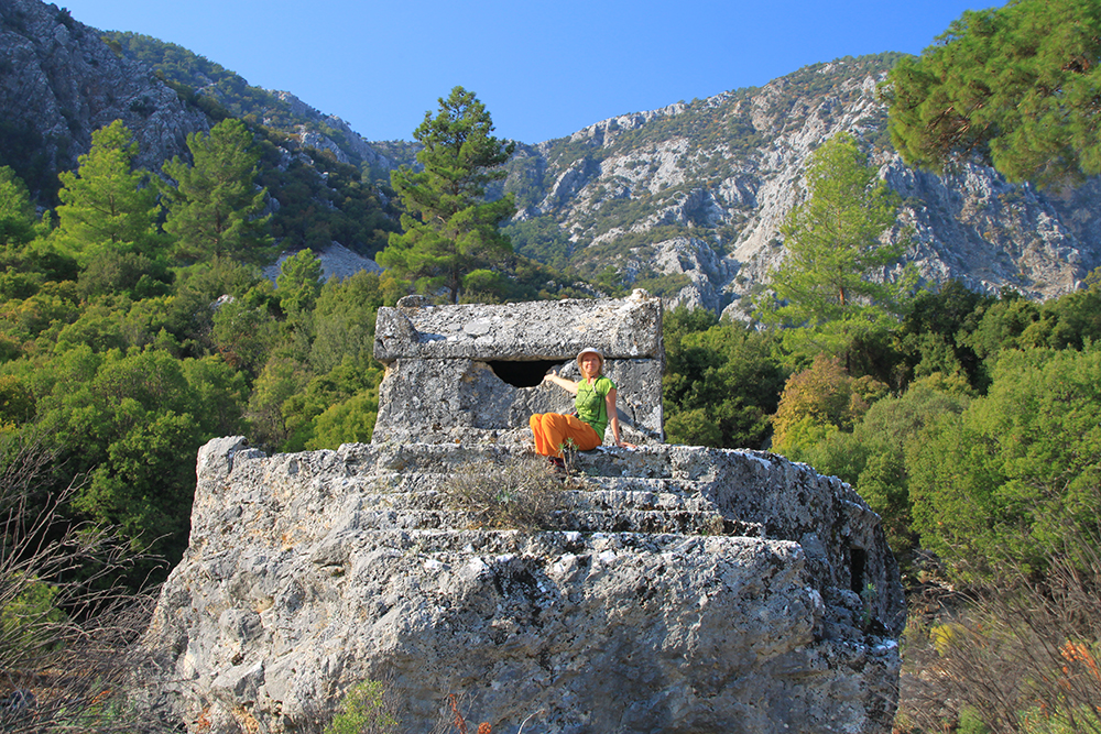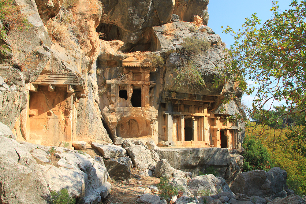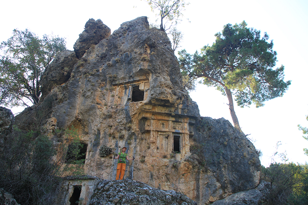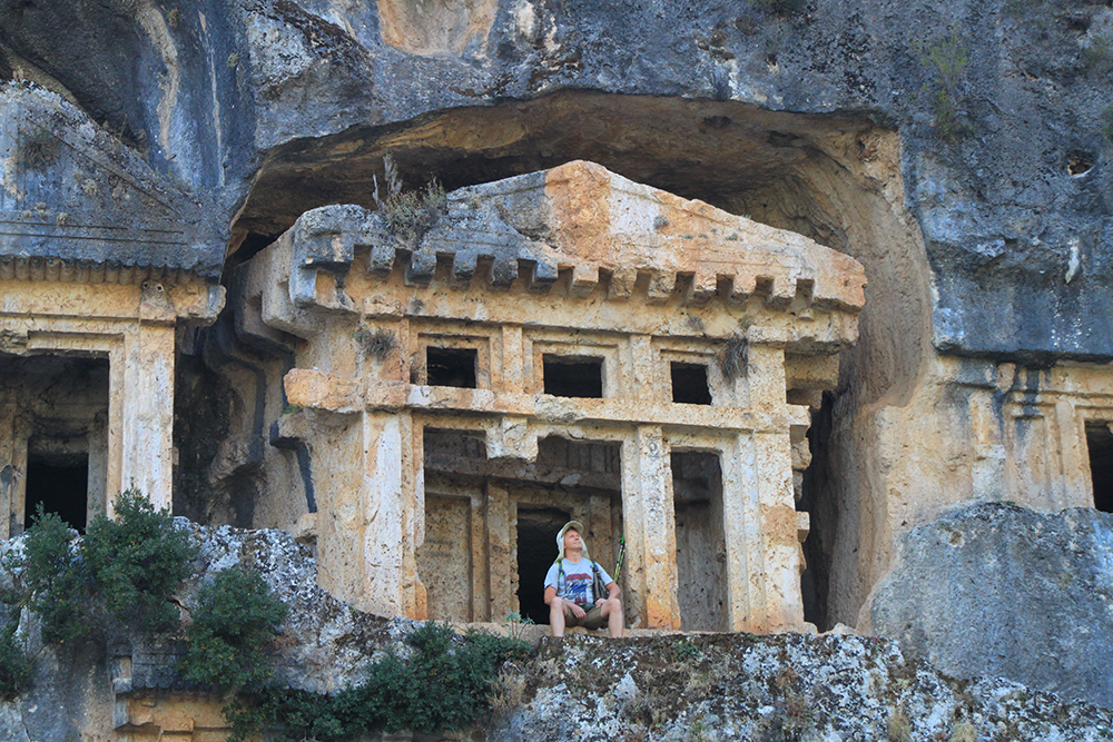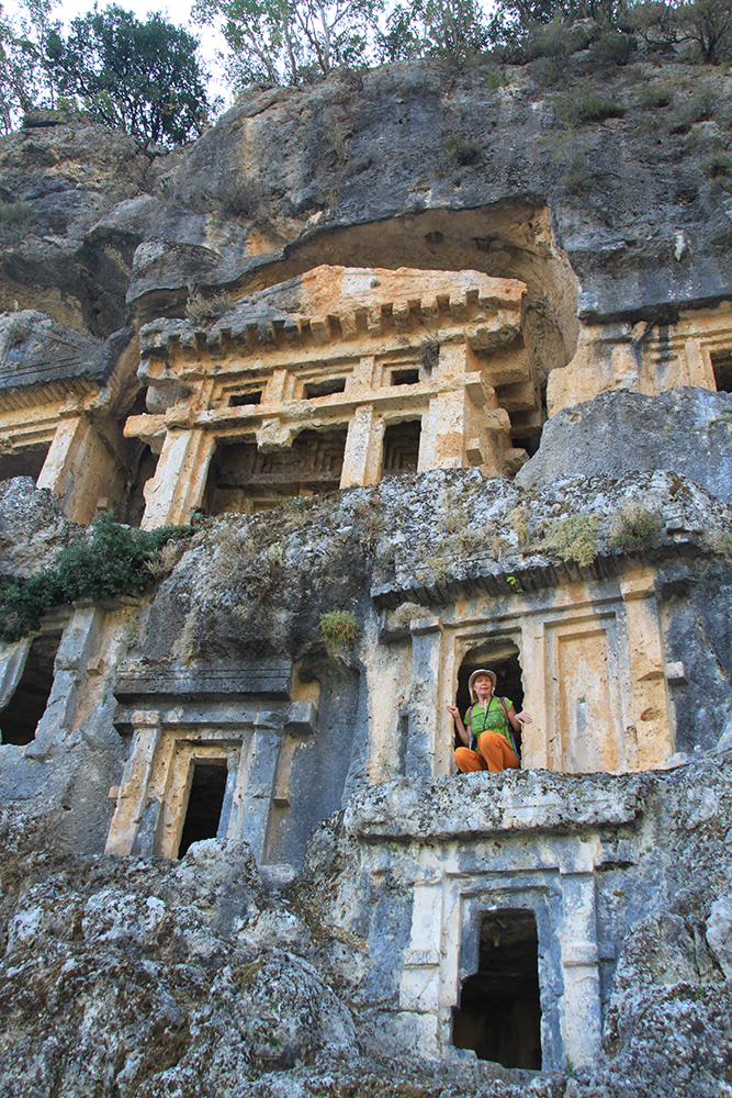 Вот такие «соты» на скалах — это гробницы. А город был расположен под стенами и сейчас довольно сильно зарос.