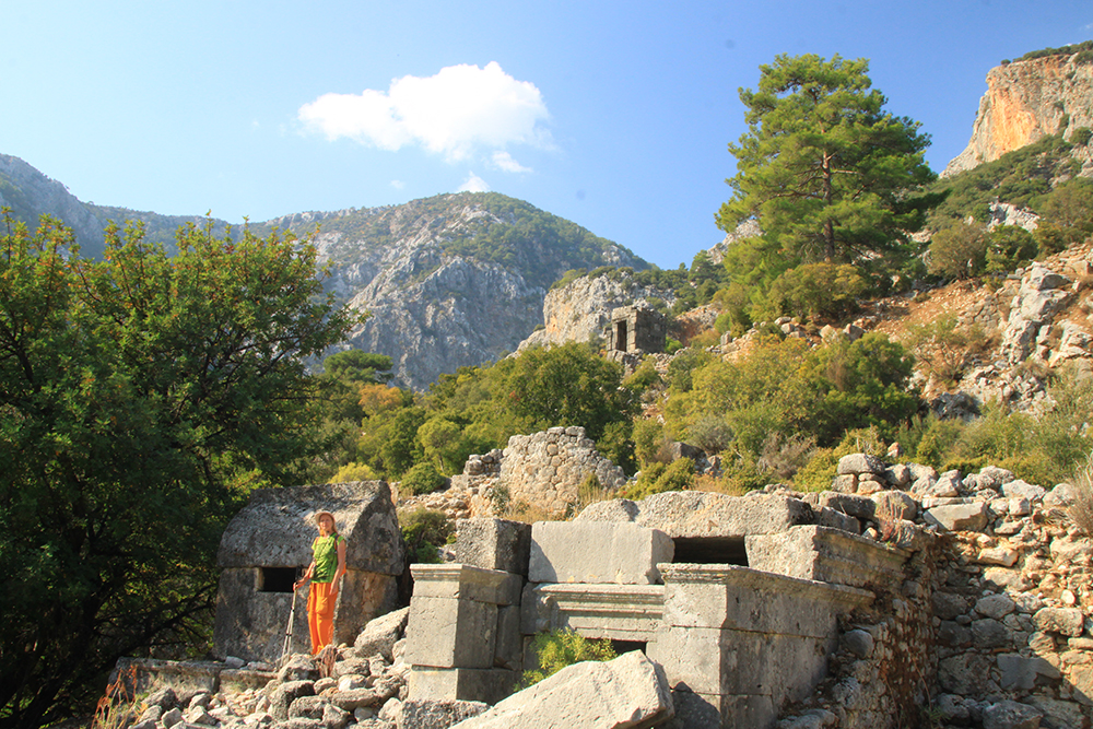 Официальных материалов по Пынаре на русском нет, только отчеты самостоятельных путешественников, которые однажды в нее забрели. Из них я прочла, что город этот существовал с 5 века до н.э., сдался в свое время Александру Македонскому. Римляне тут тоже жили, но потом из-за землетрясений (как все древние города в этом районе Средиземноморья) Пынара пришла в упадок.