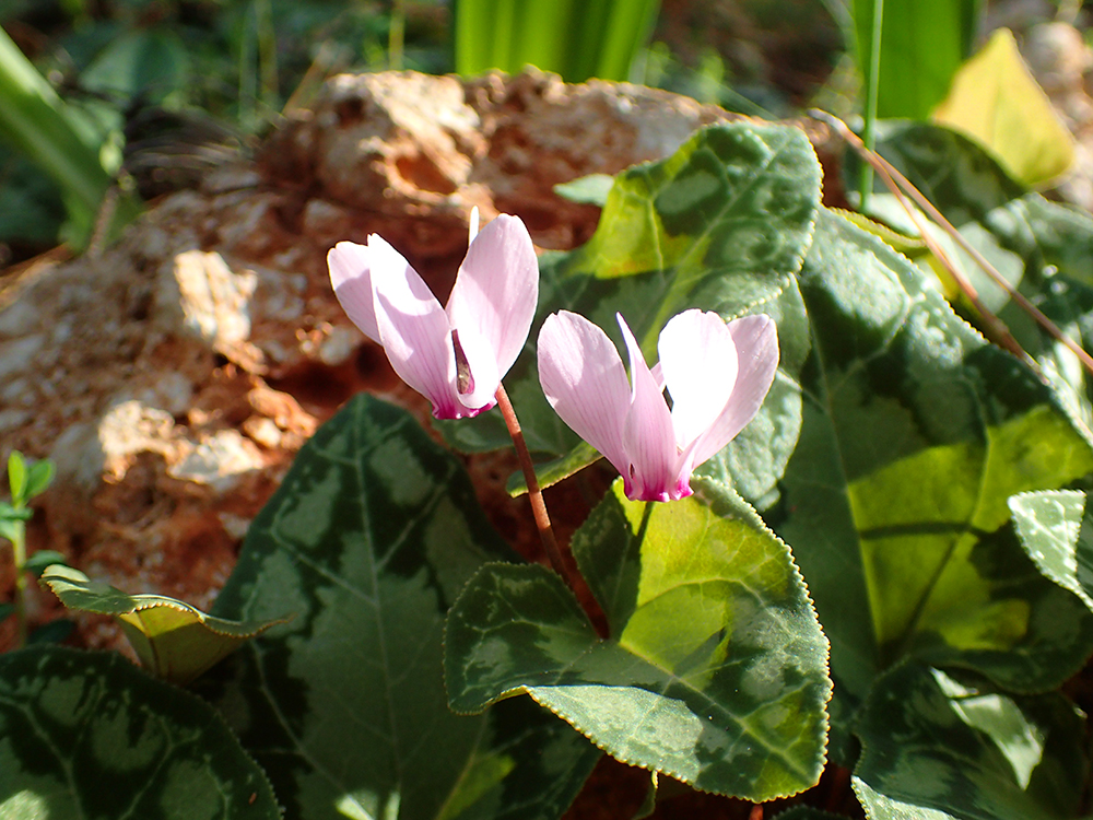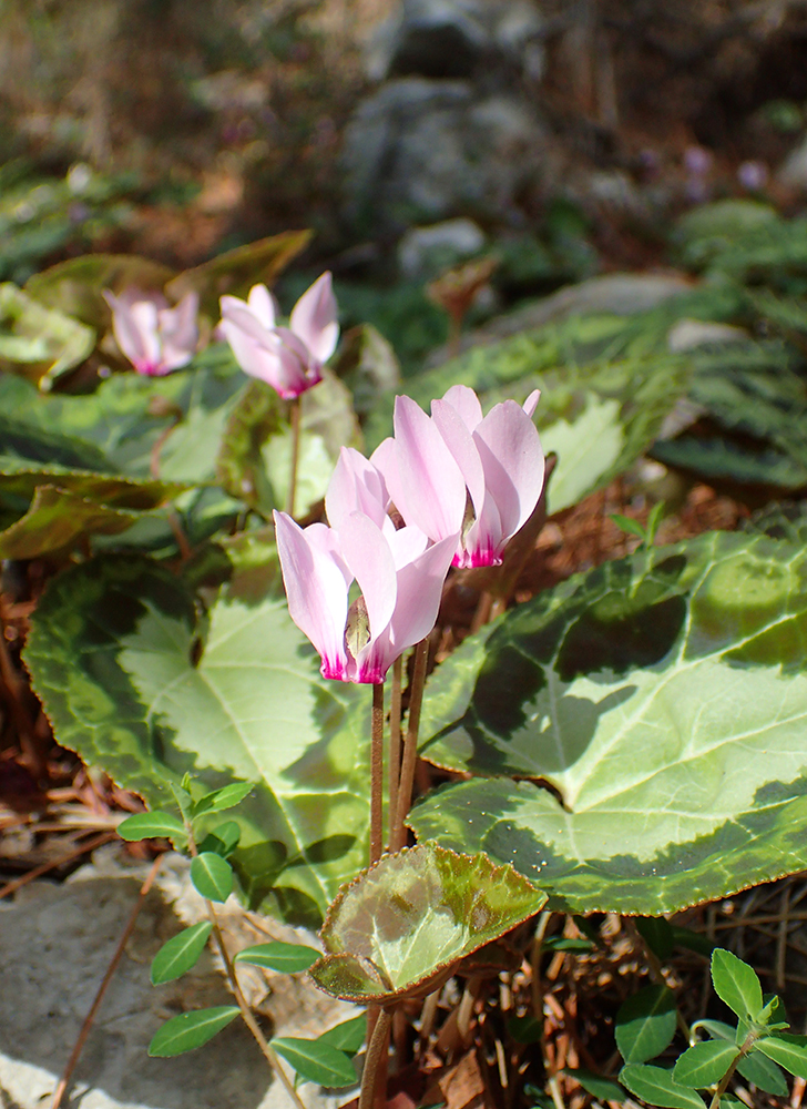 В лесу росли цветы. Цикламены осенние цветы и зимой они продолжают цвести.