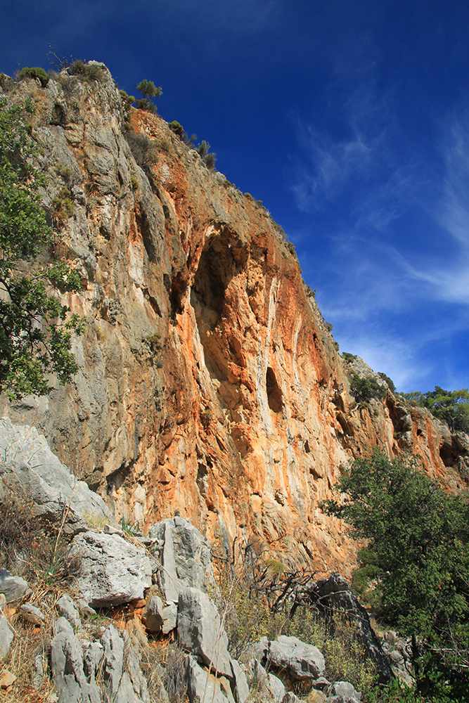 Идти в декабре тут очень приятно. Первый раз до Гелидонии мы шли от Караёза в августе и нам очень не понравилось, было дико жарко. Ну и с тех пор мы знаем, что там 6 км проезжей грунтовки, по которой не надо ходить. А вот дальше уже пешая тропа.