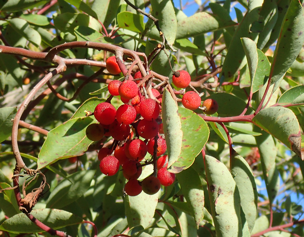 Некоторые ягоды даже стали опадать: опадает земляничник гроздьями и эти грозди висят на ближайших кустах :-)