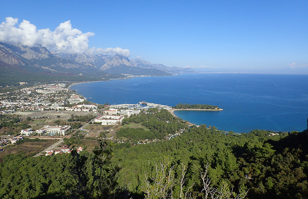 Маршрут ведет на вершину холма, откуда хорошо виден Кемер.
