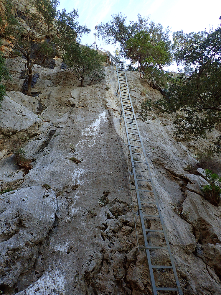 Вот тут эта скала издалека, крайняя слева, где лестницу прикрутили.