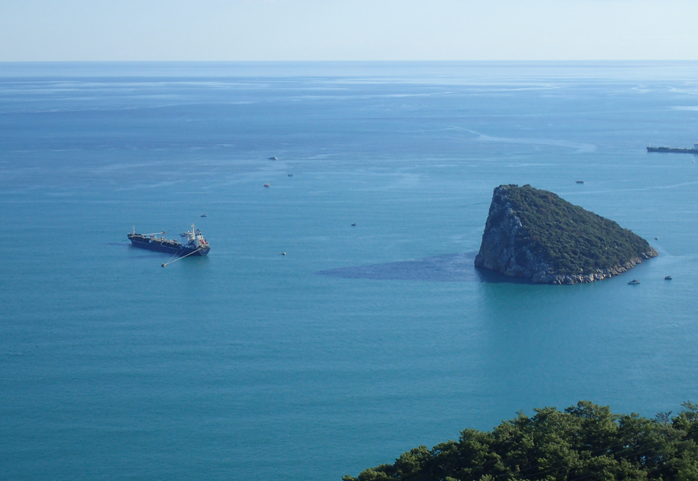 Вид на море был слишком контрастен, потому что с одной стороны ущелья лежала тень. Поэтому море снимали по дороге назад. Вид на марину.