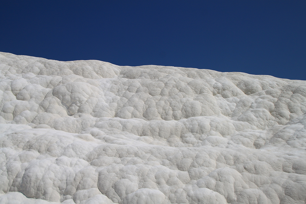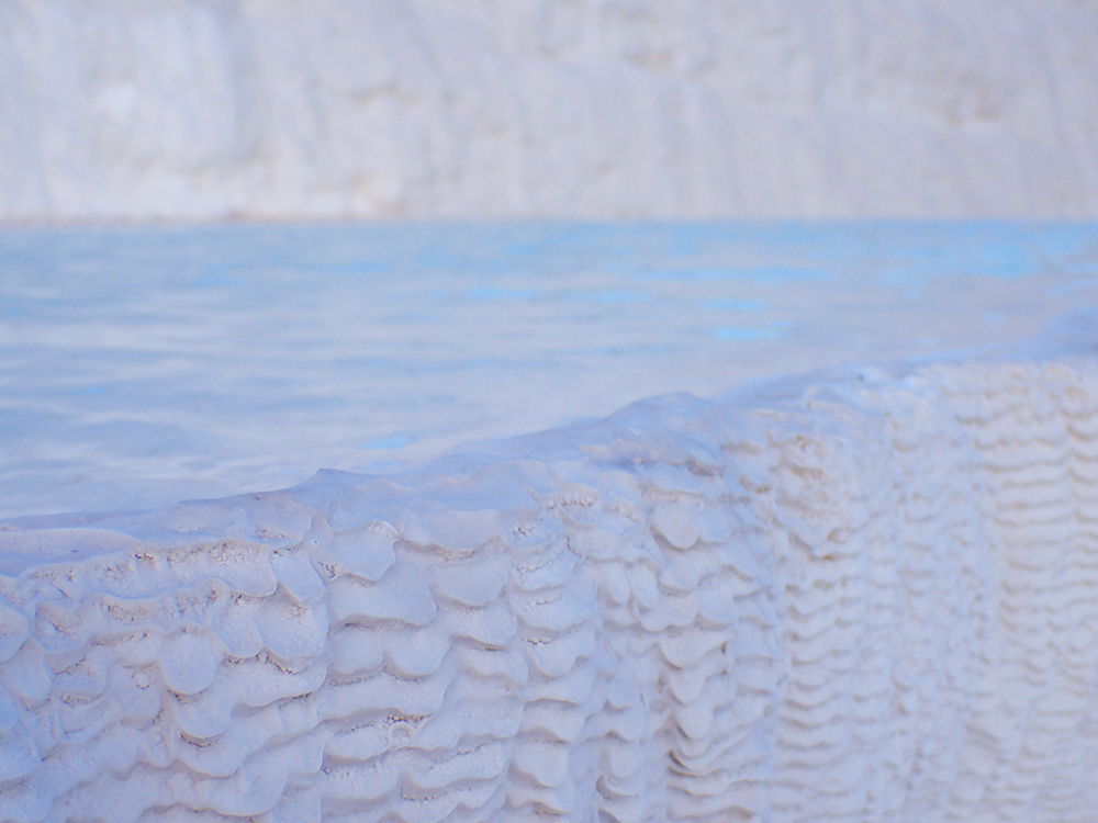 После музея пошли купаться в бассейн Клеопатры. В апреле-мае он работает с 8 до 20 часов. Эффект шампанского в термальной воде за три года усилился, в глубоком месте пузырьки теперь вылетают и скачут над поверхностью микробрызгами. Ну и сам ты весь в пузырьках, очень забавно.