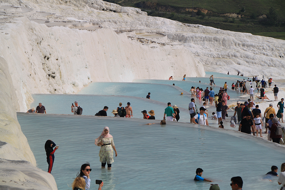 Посмотрела на старые фотографии ковидного лета 20-го года. Тогда народа было чуть меньше, но не принципиально. А в бассейне Клеопатры что тогда, что сейчас был вечером совсем немного народа.