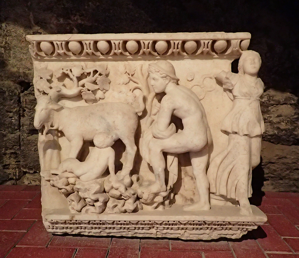 Младенец сосет козу. Это вообще-то сценка на саркофаге.