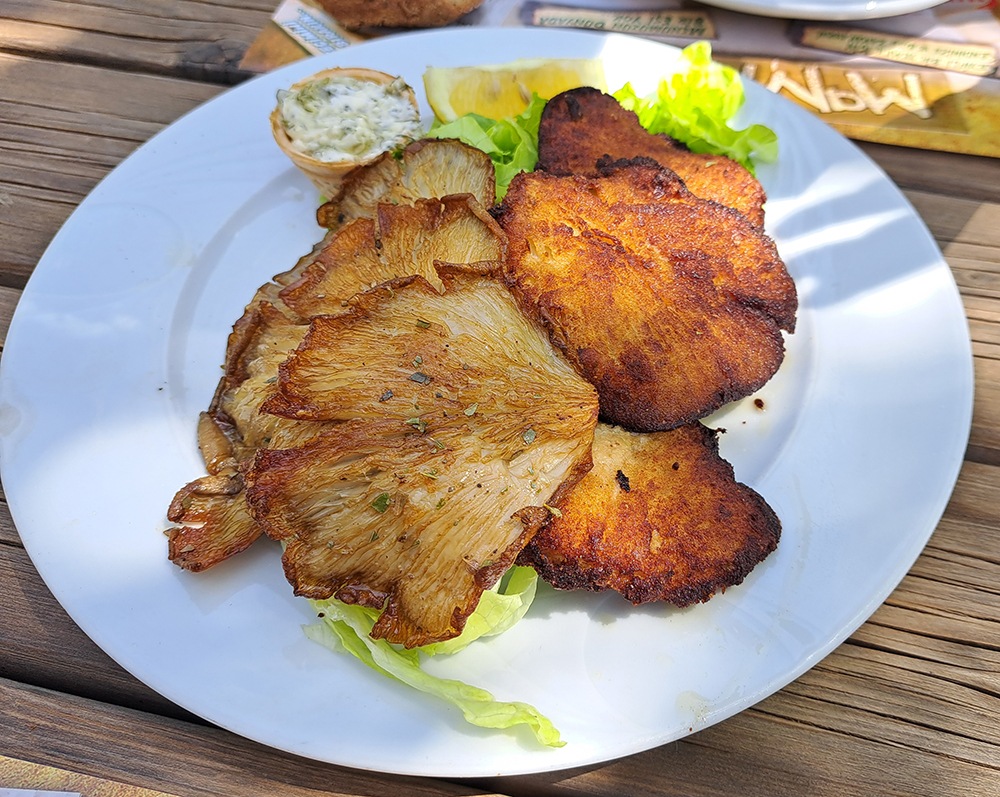 Когда ехали обратно в Анталию, остановились на обед на трассе в деревушке Tatköy (55 км от Анталии). Там есть грибной ресторан Mantarevi. Хозяева сами выращивают грибы и делают из них все. Первыми-вторыми блюдами из грибов нас не удивить, но у них хлеб с грибами, десерты, варенье...