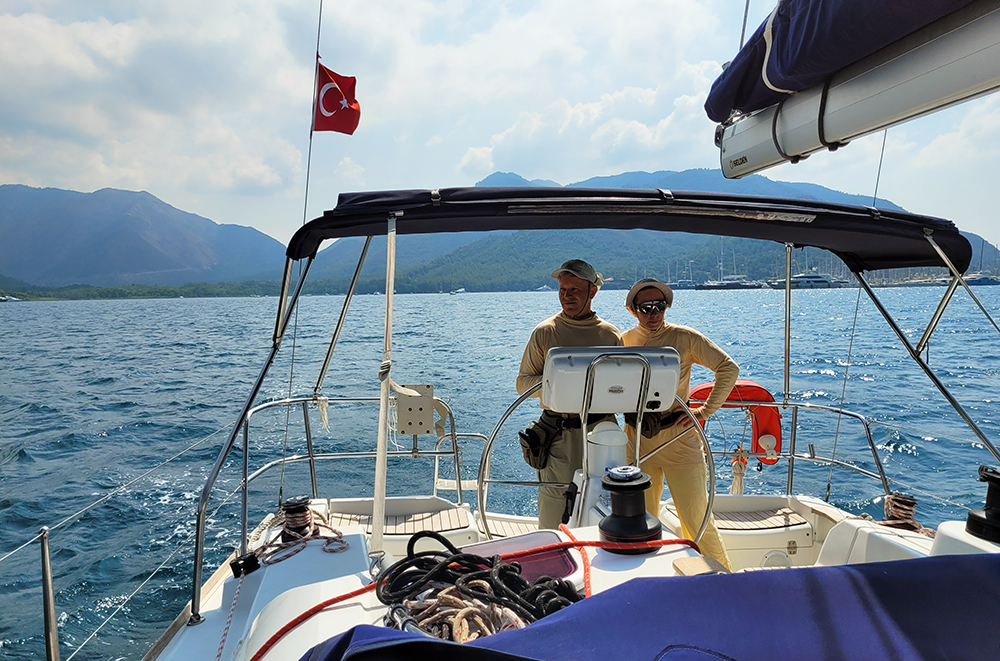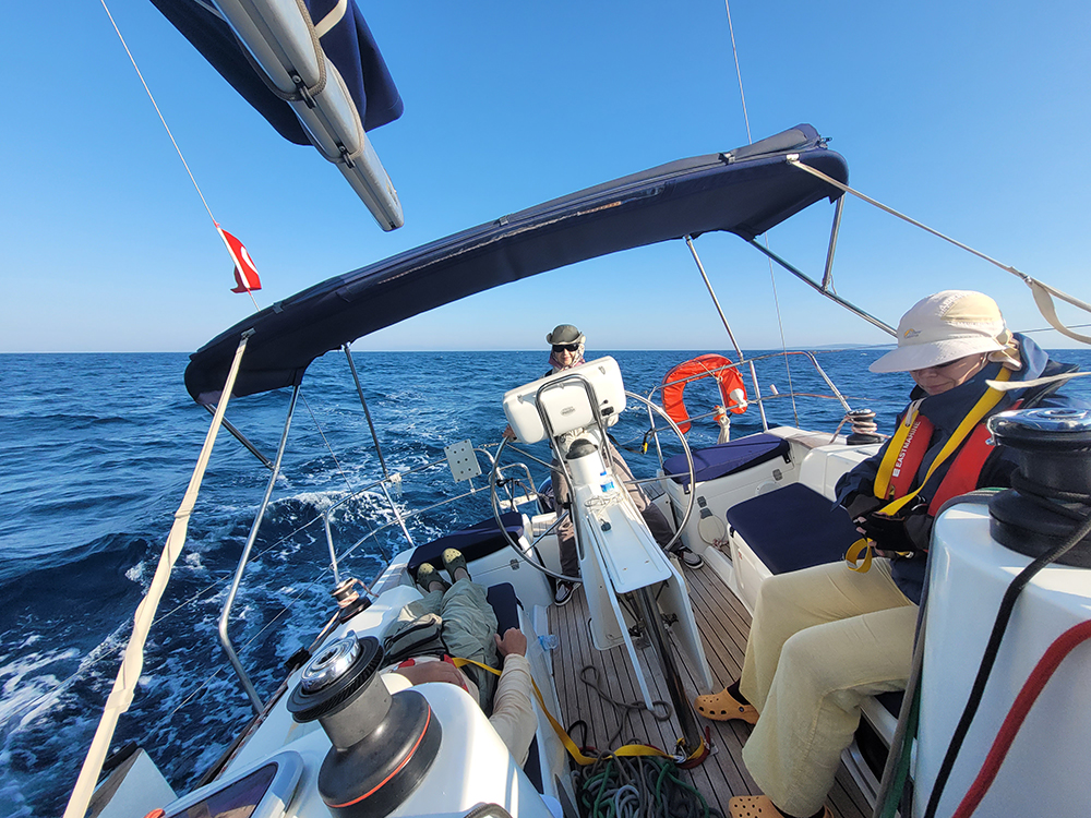 А еще у нас в Бодруме был другой сюрприз: наши два неопытных участника покинули яхту и улетели домой. Вроде бы всем объяснили заранее, что поход не будет рекреационным, но не все захотели слушать, а тем более думать. Один участник укачался, а второй уехал чисто с ним за компанию. Вот такая вот у людей бывает «любовь к морю». Нам наука на будущее.