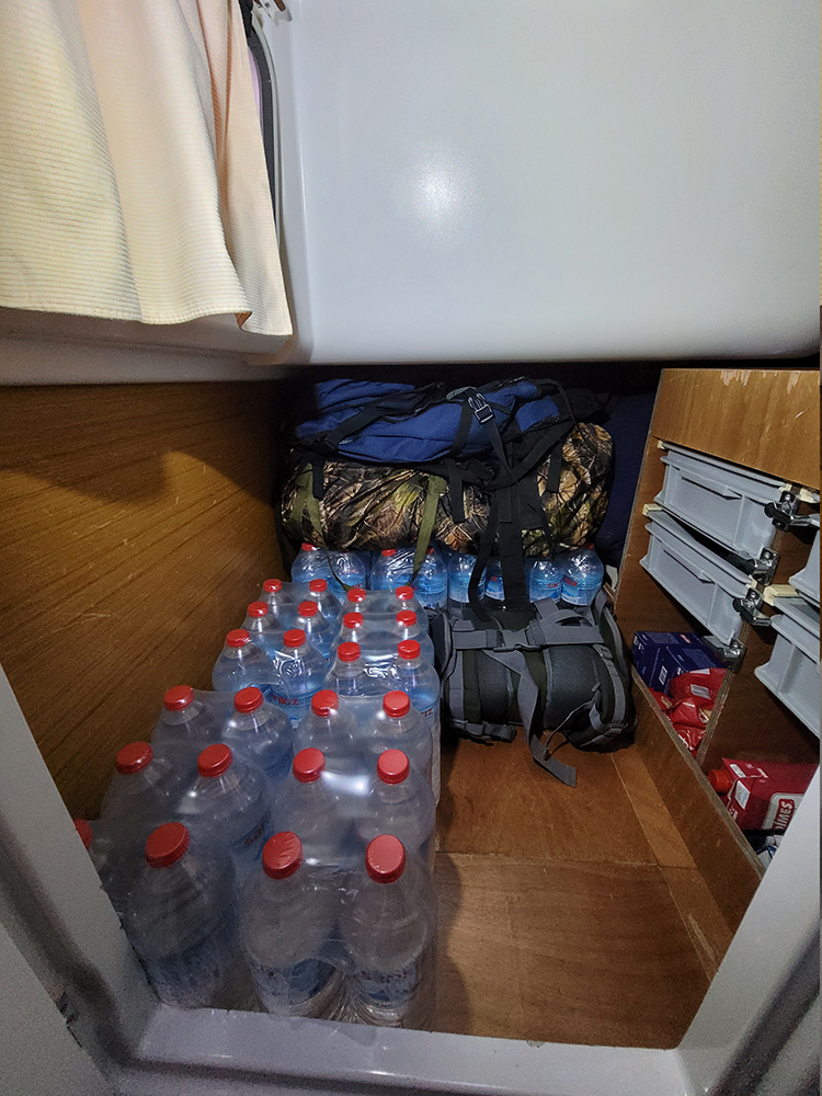 При длинных переходах и постоянной качке люди, оказываются, пьют много воды. За неделю мы вчетвером выпили 10-дневный запас на шестерых, вот это было удивительно. Круизный расход 1.5 литра в день на человека тут не работает, нужно 2.5 литра. При том, что жарко вообще не было, мы шли на север и все время были в куртках и шапках. И купаться хотелось очень не каждый день.