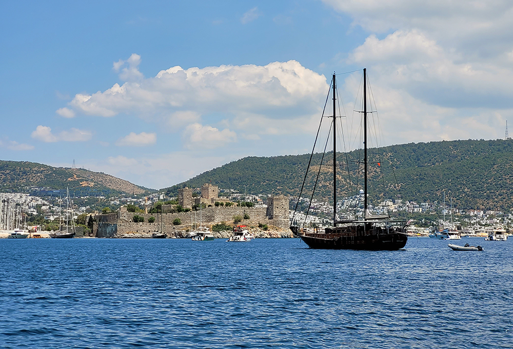 Первый наш переход был Мармарис (древнее название Фискос) — Бодрум (в древности Галикарнас): 28 часов, 116 миль, если посчитать с галсами. А галсов было изрядно, ведь по дороге в Чанаккале господствующий ветер был нам встречный. Мы специально задумали плавание на начало июня: уже не так холодно, но еще не начался летний ветер мельтеми, против которого в Дарданеллах наша тихоходная яхта была бы бессильна.
