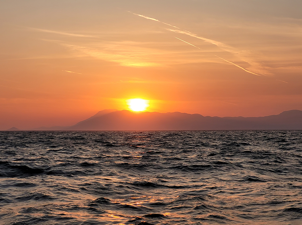 Заводя вечером того дня мотор, мы услышали писк моторного аккумулятора. Он заявил нам, что от мотора он не заряжается. А должен был. Это означало, что в следующий раз его можно и не завести, нельзя теперь глушить мотор. Мы позвонили чартерникам и приняли решение идти ночным переходом в Айвалык и там вызывать мастера. Поэтому мотор поставили на нейтраль, выпустили зарифленный стаксель и поехали на нем.