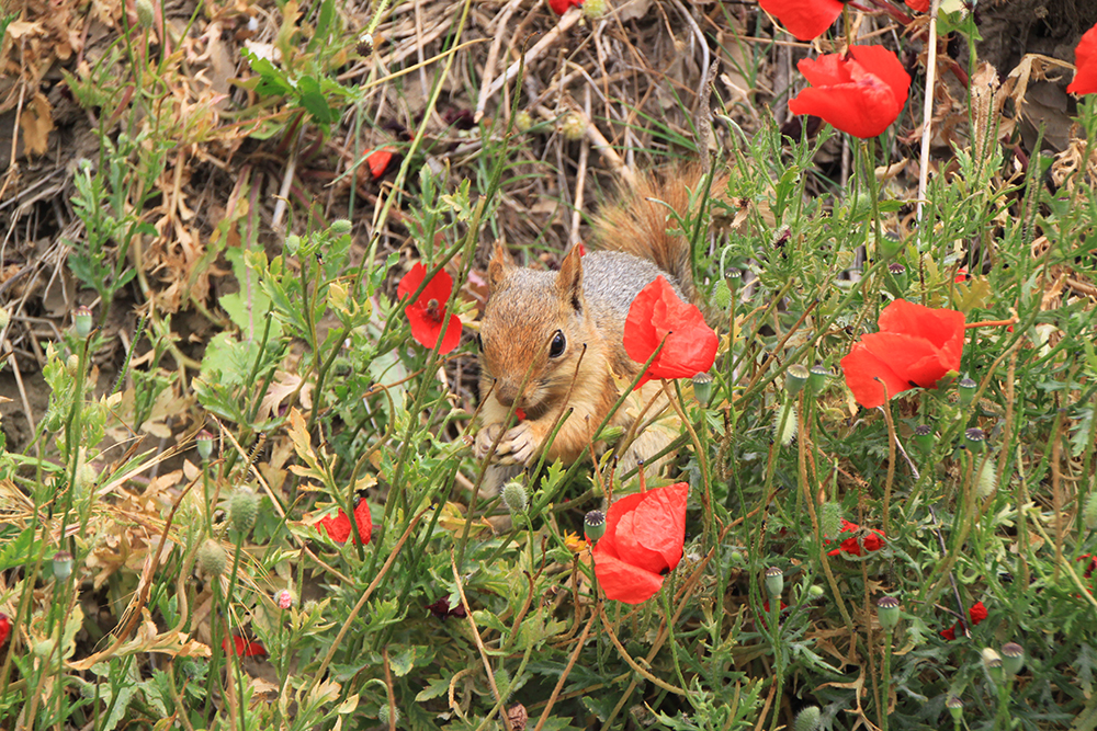Людей она особо не боялась. Она пришла есть мак :-)