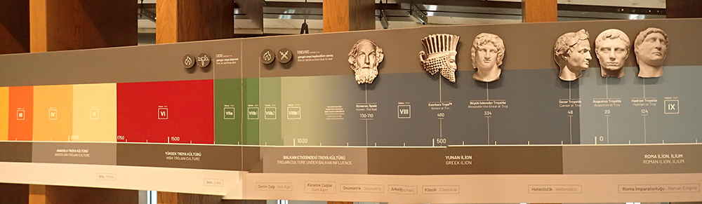 Троянская война была в шестой, она красным цветом отмечена, это 15 век до нашей эры. А Гомер жил во времена восьмой Трои, на 700 лет позже.