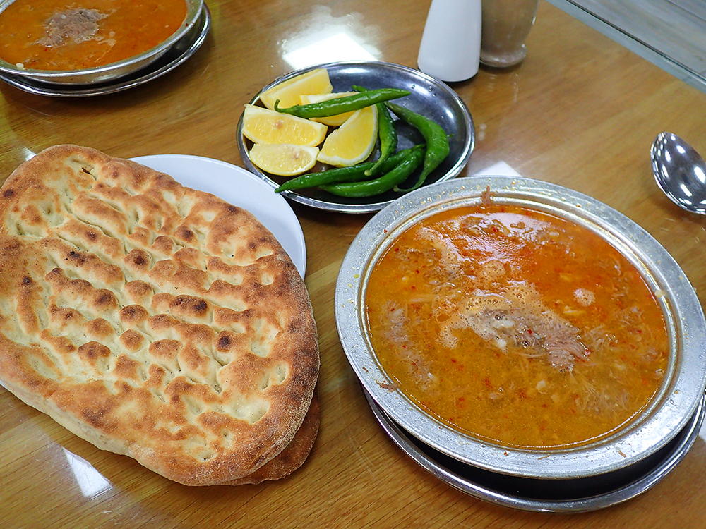 Начну в хронологическом порядке. Утром местные жители едят горячий бараний суп бейран. Климат холодный, зимой суп особенно уместен. Есть заведения, которые специализируются только на этом супе. Там длинные столы, всех рассаживают рядком и мгновенно приносят бейран.