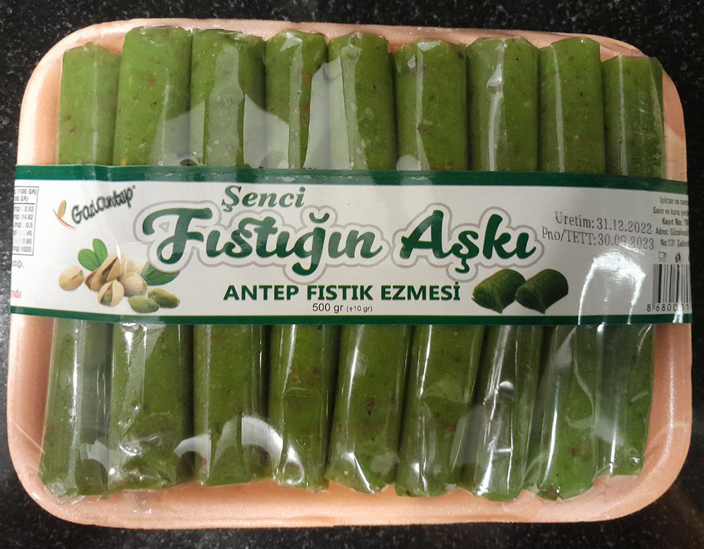 Мененгич продается и в других городах Турции, но мало кому нравится, поскольку доезжает в виде порошка, куда уже добавлено сухое молоко и сахар. Получается что-то типа растворимого кофе, а кто ж его любит? Настоящий мененгич делается из фисташковой пасты, в исходном продукте не должно быть больше ничего. Напротив кофейни есть магазинчик с фирменной продукцией, где мы купили такую пасту. Ну и еще проверили, что ее можно заказать онлайн в Анталии.