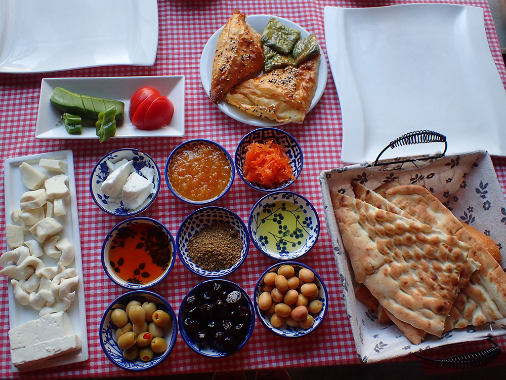 На сырной тарелке сверху лежит газиантепский сыр келле: похож на моцареллу, но потверже немного и на зубах поскрипывает. А с бюреками рядом лежит катмер, чтобы мы не забывали, где находимся :-)