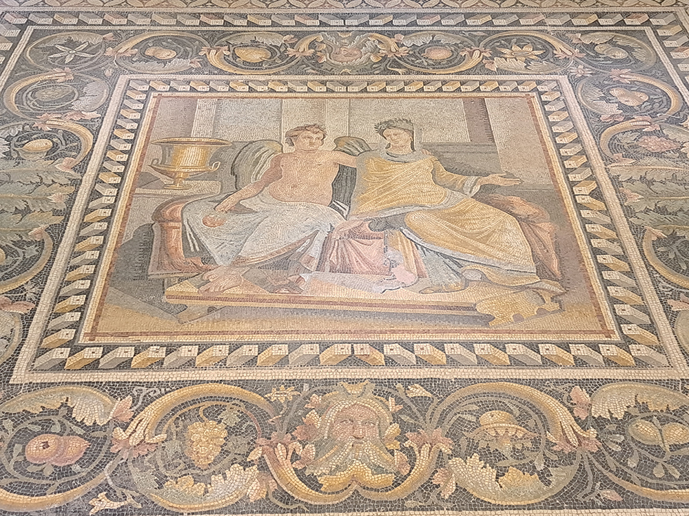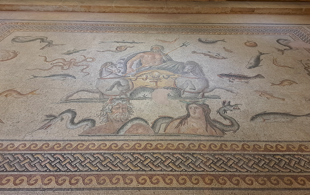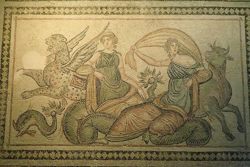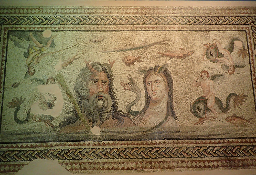 Бог Океан и его супруга Тефия. Это мозаика со дна бассейна. Меня сразу заинтересовал дракончик.