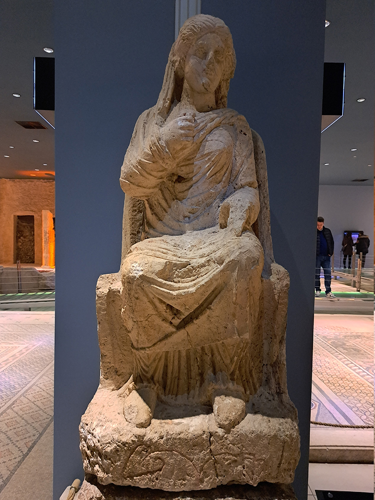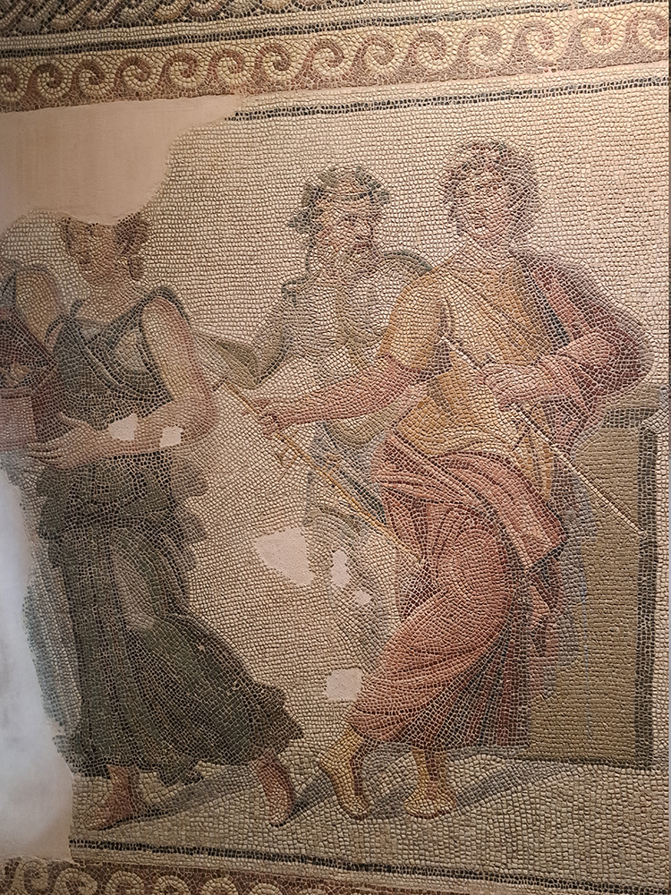 На втором этаже первого зала в самом углу находится «Цыганка» — самая известная мозаика Зевгмы и, можно сказать, лицо города.