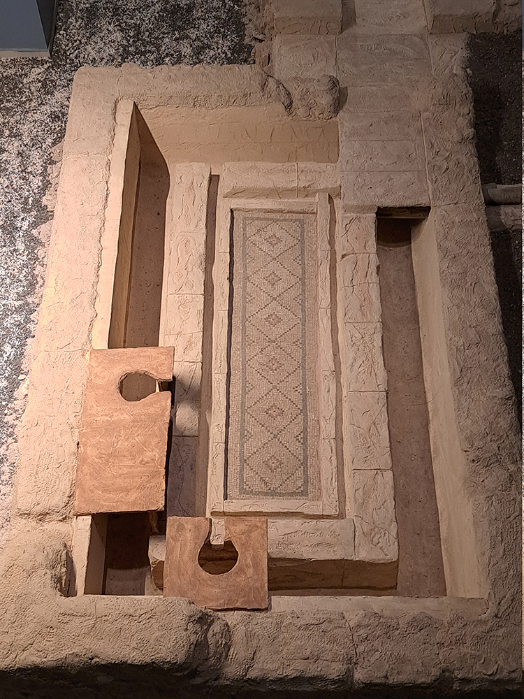 Вот античный туалет — даже, можно сказать, античный ватерклозет. И в центре тоже мозаика!