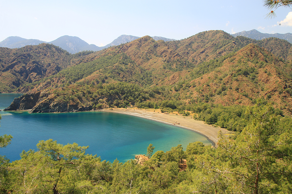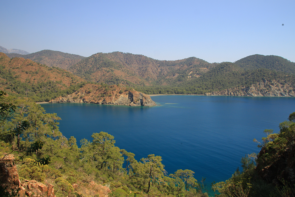 С автобусами нам в тот день не очень повезло: выходя, увидели, как с конечной уезжает TA08. Прождали следующий чуть ли не час (ходят они раз в 20-30 минут), прежде чем поняли, что в несезон водители просто не доезжают в этот дальний угол поселка. И точно: отошли в сторону центра Текировы примерно километр, сели в автобус и пронаблюдали, как к стартовой точке Ликийки он не поехал. Так что имейте в виду: с мая по октябрь, наверное, доезжают все, а вот в зимний сезон один из трех поедет, и то не факт. Так что надо прибавить к основному маршруту еще километр-другой :-)