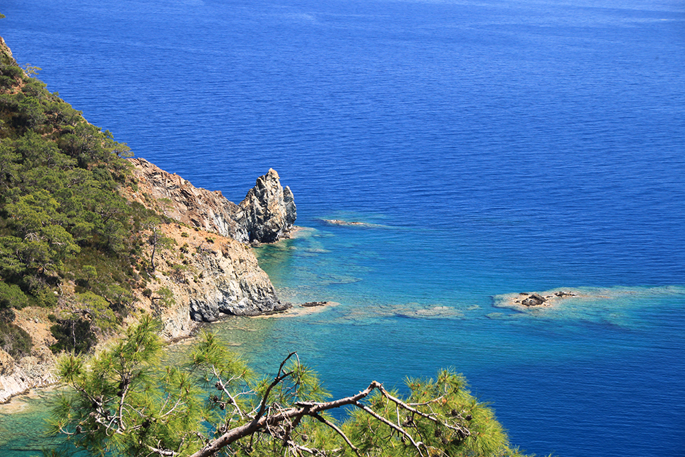 Карабкаемся на тропу вдоль моря. Вид на Чирали.