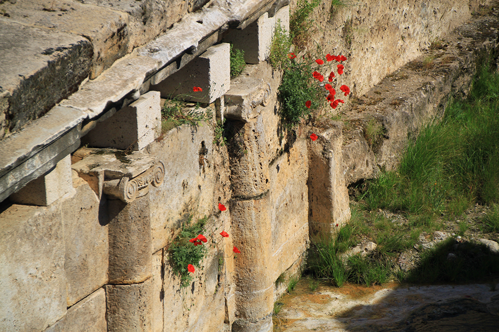 Среди руин цветут маки.