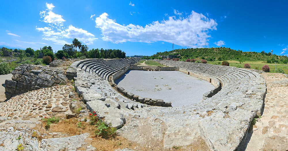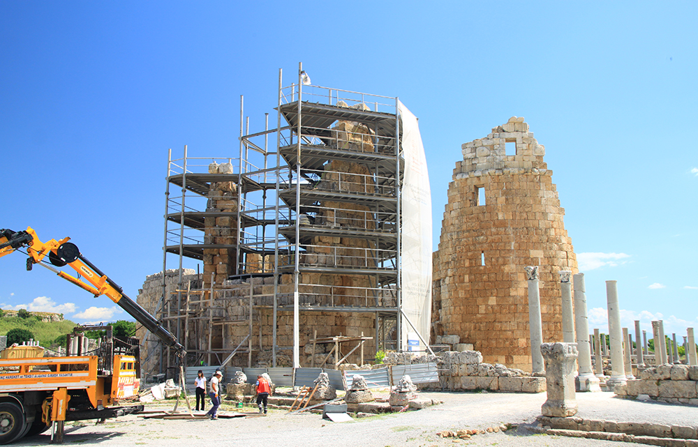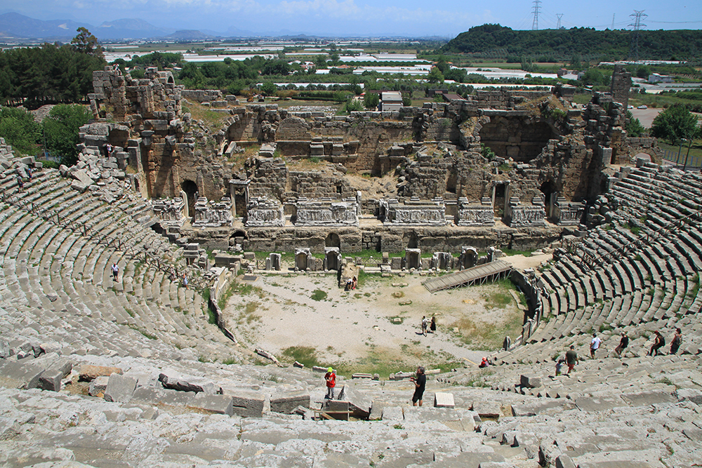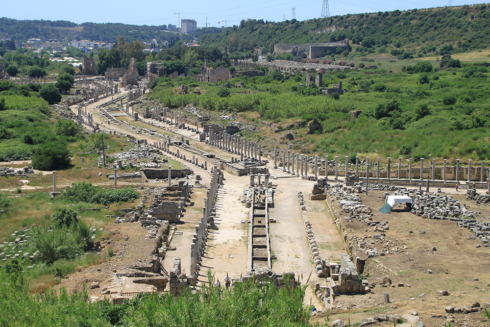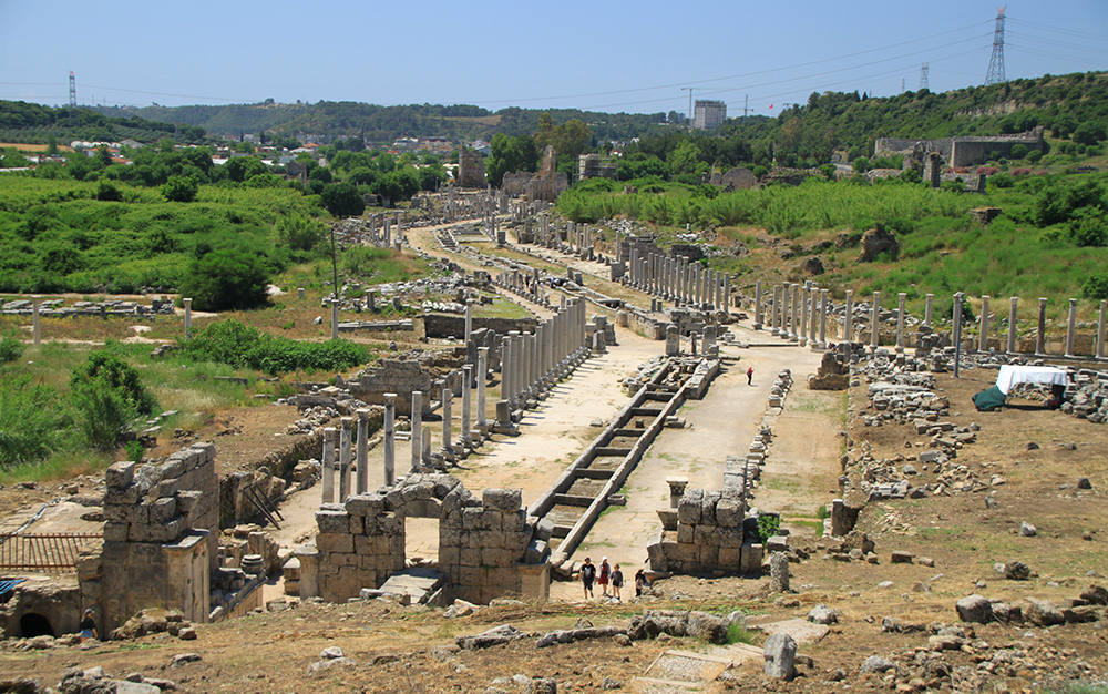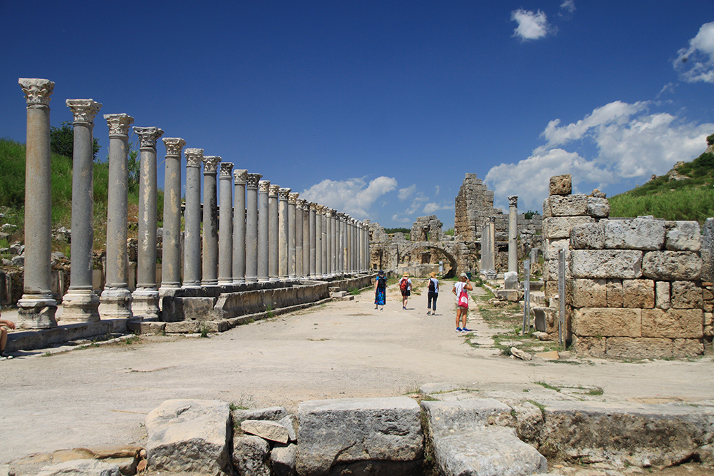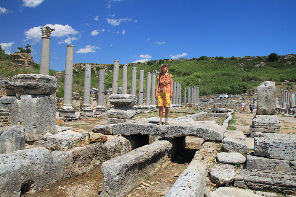 Античный город Перге находится в ближайшем пригороде Анталии, до него можно доехать на трамвае: остановка Аксу, далее минут 15 пешком.