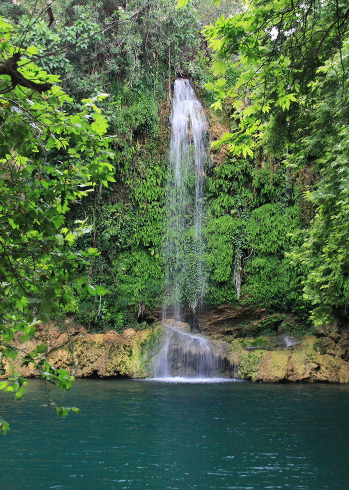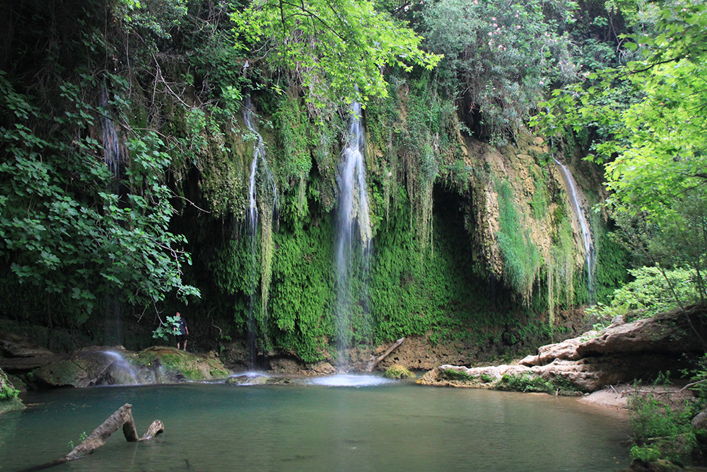Дело в том, что в 6 километрах от Перге находится парк Куршунлу с симпатичными водопадами. И мы на карте даже нашли как бы пешеходную тропу туда. Ключевое слово тут «как бы». Потому что, как часто бывает с такими тропами вокруг Анталии, частично она на местности есть, а частично есть только на карте. Поэтому шли мы долго и трудно. Где-то — вдоль дороги, где-то по деревням, а приходилось и в сады забираться, и через частные постройки проходить. В деревнях наелись шелковицы всех сортов. А еще я попробовала самую вкусную в моей жизни мушмулу. Всегда считала ее водянистым фруктом, но нет, она подобна амброзии, если ей дать созреть на дереве. Однажды забрели в открытый коровник (трек так шел, ничего личного), и там стояли очень красивые огромные дойные коровы с пушистыми ушками. На дороге нам долго сигналил водитель грузовика, а все для того, чтобы подарить кучку огурцов. А то как это мы, идем пешком, никак нельзя без огурцов :-)