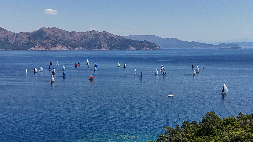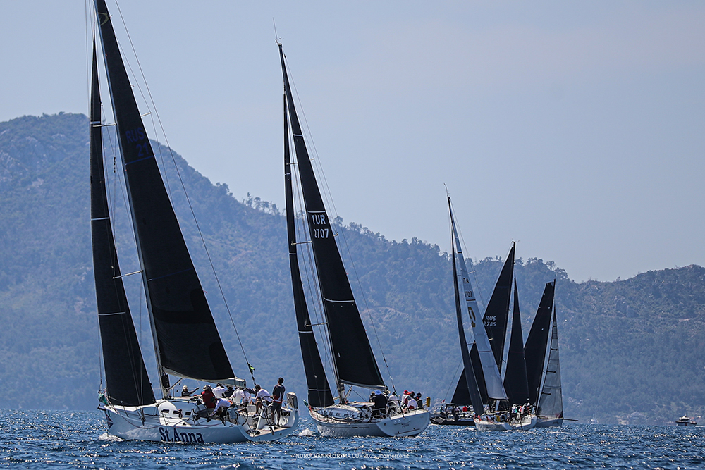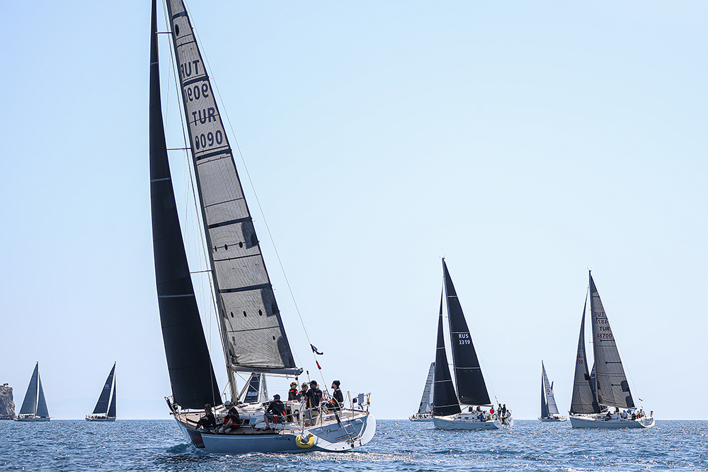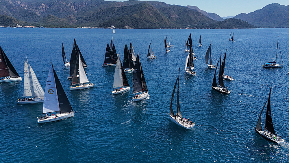 Почти все на гонке с черными кевларовыми парусами. Белых совсем чуть-чуть.