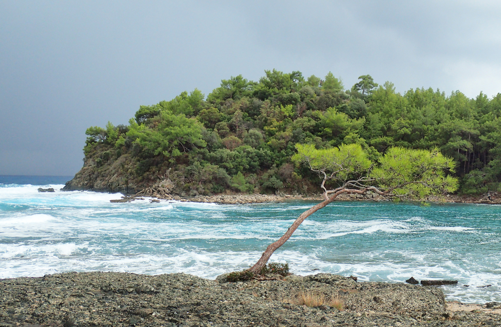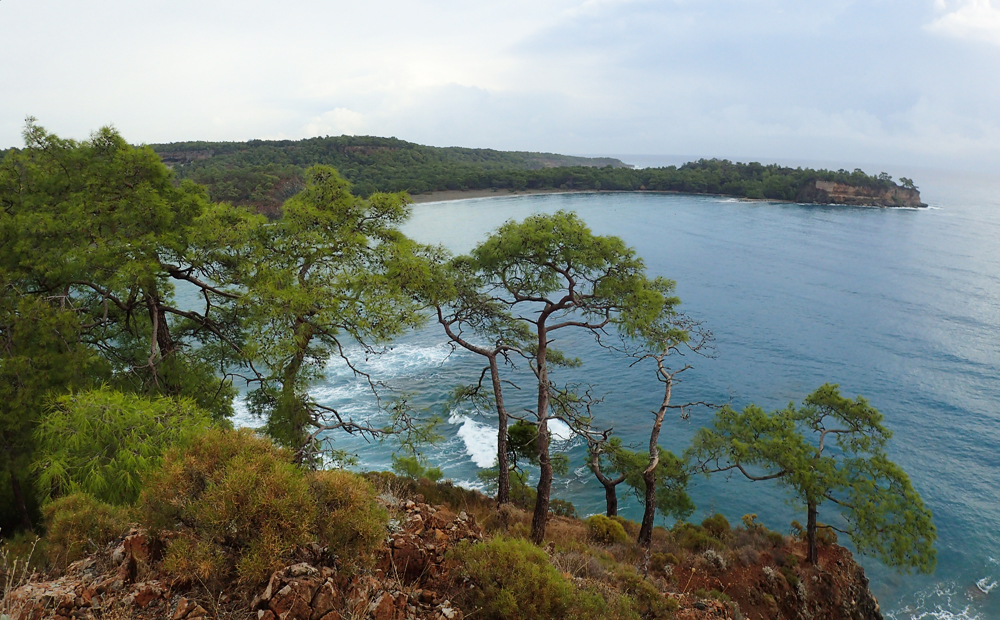 Вид на мыс с древним городом Фаселис с панорамной тропы в окрестностях Текировы: