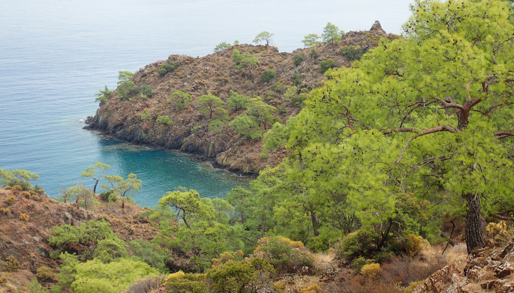 Ни в какой Олимпос идти смысла уже не было, оставила его на завтра. Зато в оставшееся светлое время прогулялась до начала нижней Ликийской тропы Чирали-Текирова, полюбовалась красивыми бухтами и соснами.
