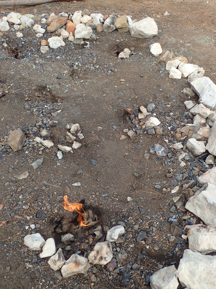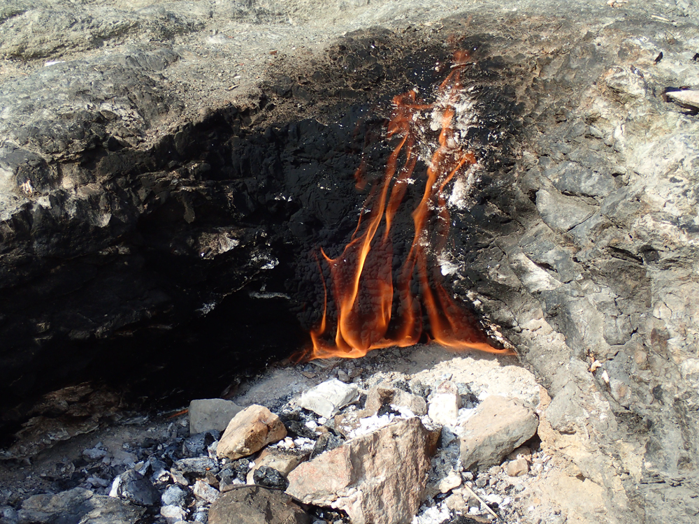 Есть еще нижние огни Химеры. Они гораздо внушительнее, некоторые по полметра высотой. На склоне отверстия типа мини-пещерок, из которых вырывается пламя.