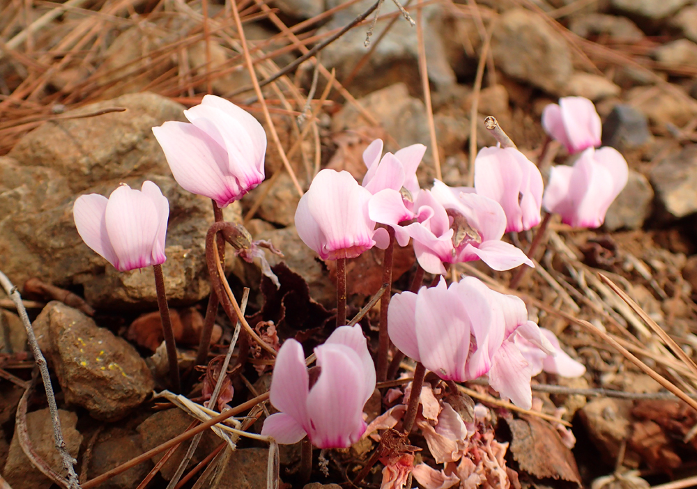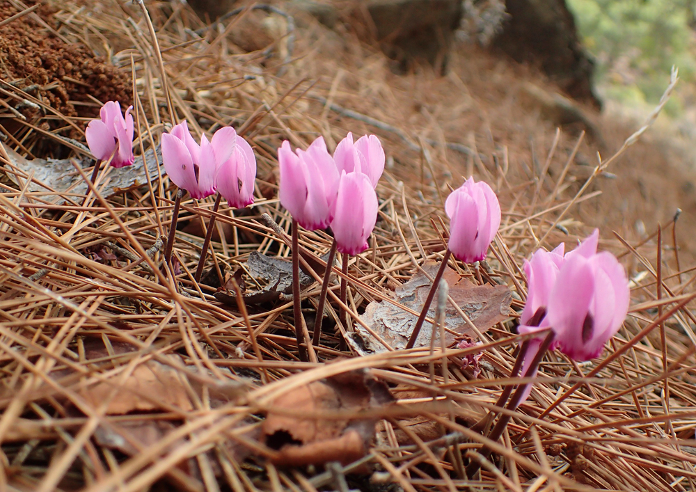 Зато по дороге встретила цикламены. Их листья с изящными узорами много где в лесу попадаются, но вот цветов в ноябре немного.