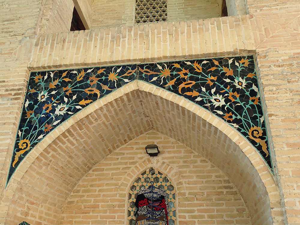 В медресе Абдуллазиз-хан очень красивый вход с мукарнами.