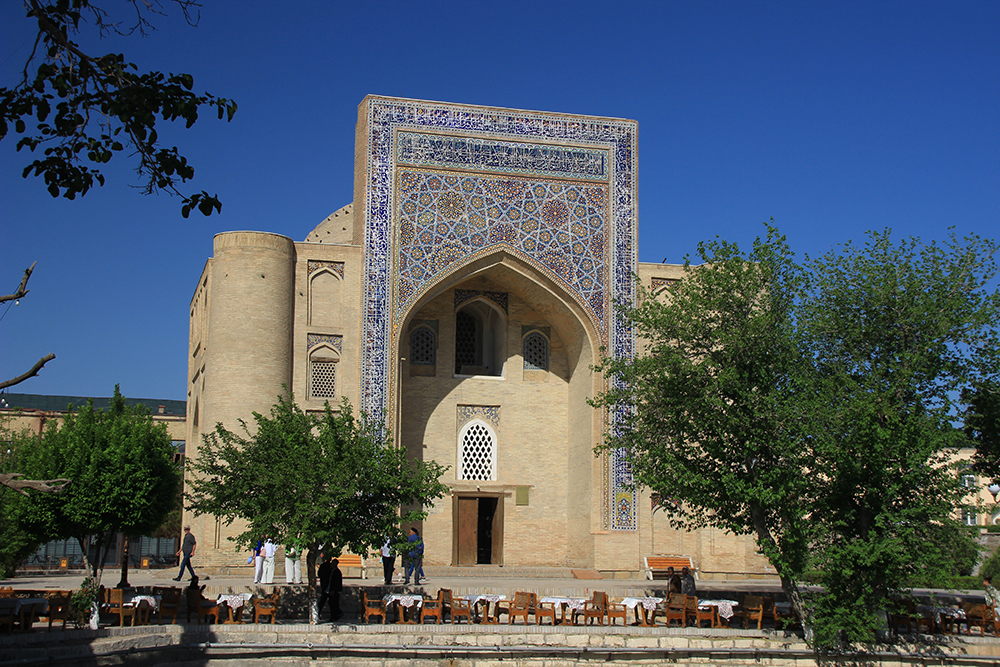 А вот здание медресе напротив Диван-Беги освещено солнцем как раз утром.