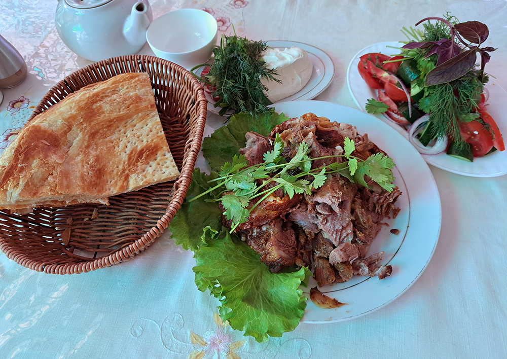 В обед мы поехали в ресторан «Чорбакр», что на окраине города. Туда и обратно надо добираться на такси. Ресторан знаменит своей бараниной из тандыра.