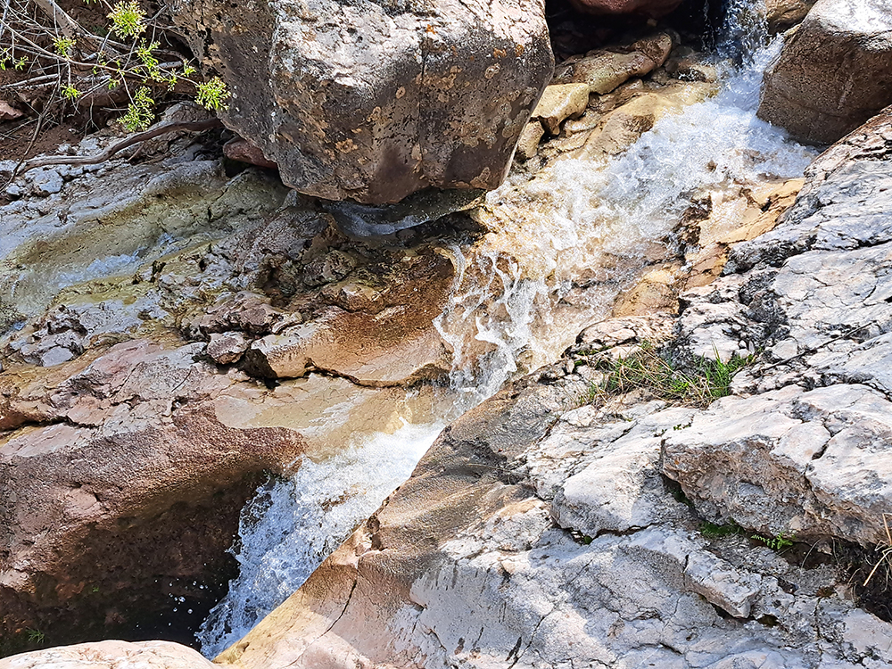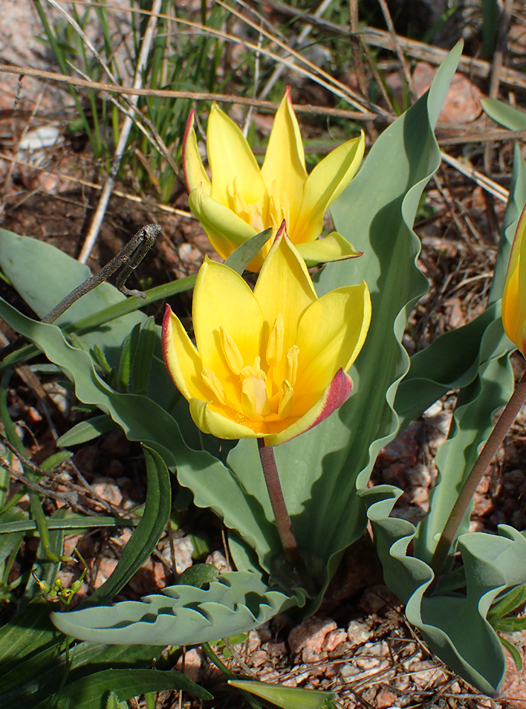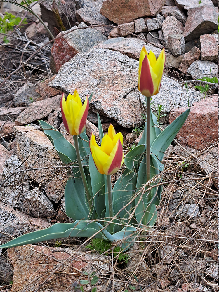 Трек небольшой, в оба конца 7.5 км. До конца маршрута мы чуть-чуть не дошли, там пришлось бы по руслу идти, а так мы его везде перепрыгивали. Зато в финальном для нас месте росли тюльпаны.