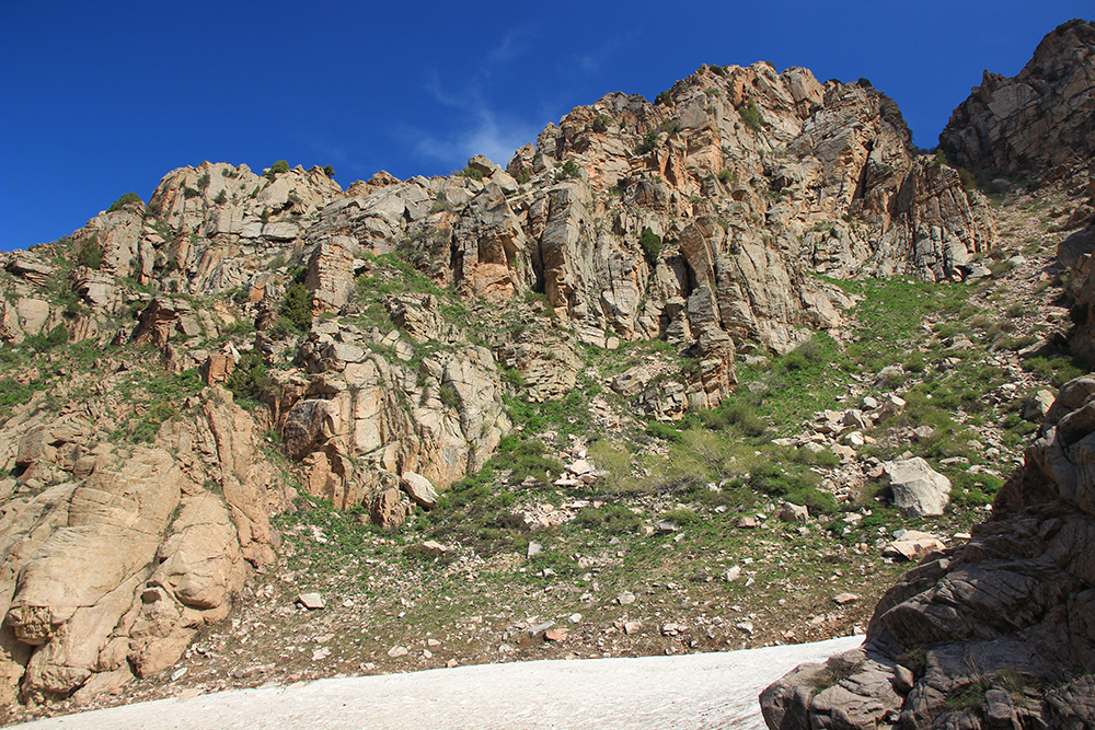 Мы были в Чимганских горах в 20-х числах апреля, а сезон начинается в мае. Верховья рек в это время еще забиты снежниками, вода в реках высокая, поэтому не все маршруты мы смогли пройти целиком. А главное — погода нестабильная, облака и дожди. Лишь один день из четырех был полностью ясный.
