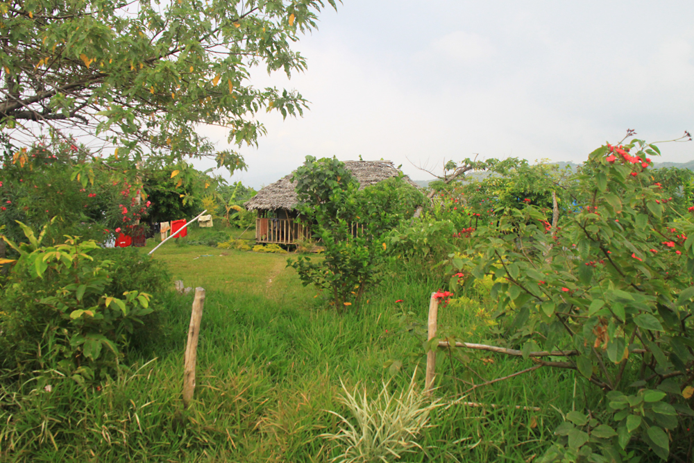 К местным жителям мы не особо приставали, просто фотографировали их из ближайших кустов :-) Но однажды с нами пришел знакомиться один из рыбаков по имени Нэльсон. Мы угостили его булкой, он послал сына нарвать нам кокосов и устроил мастер-класс по открыванию кокосов на глазах у благодарной публики. Ран поговорил с ним о промыслах и особенностях жизни в деревне. Именно Нэльсон объяснил нам, где же искомый коралловый риф. Когда мы собрались уходить, он отрядил специального человека проводить нас домой короткой и тенистой дорогой.