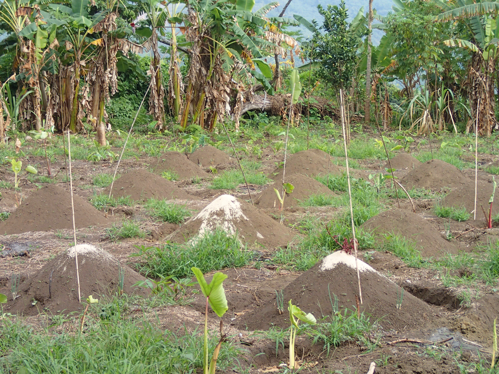 А здесь маниоку только что посадили. Вырастет большой клубень, из которого вымывают крахмал и используют его вместо муки или гарнира.